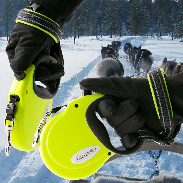 手袋をつけたまま伸縮リード用ストラップ Lを使用することができます!